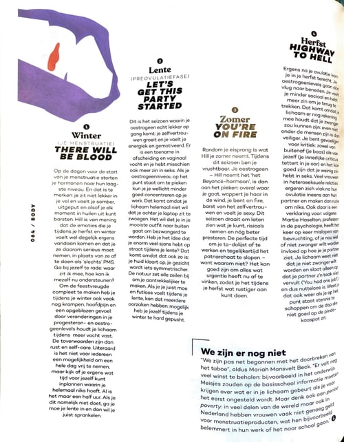 Het is wat, die vrouwelijke hormoonhuishouding. Waarom voel je je als vrouw de ene dag een natte krant en de volgende on top of the world? Na het lezen van het boek 'Period Power' door schrijver Maisie Hill raakte ik geïnspireerd om meer proberen te leven volgens mijn cyclus en schreef er een artikel over voor Glamour.